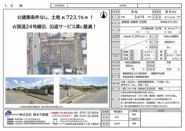 所在地奈良県五條市三在町 ①売主は契約不適合責任を負いません |