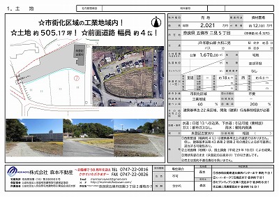 所在地奈良県五條市二見3丁目 ・土地約105.17坪 ・国道24号線沿い角地 ・建築条件なし |